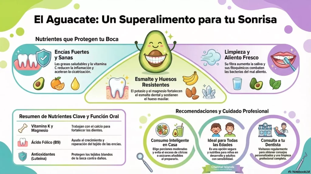 En Channel Islands Family Dental Ventura, ubicada en Ralston St, solemos recomendar a las familias incluir alimentos como el aguacate en sus dietas, especialmente si buscan reforzar tratamientos de prevención y cuidado periodontal. Lo mismo hacemos en nuestras sedes de Ventura, Oxnard, Port Hueneme, Santa Paula y Newbury Park.